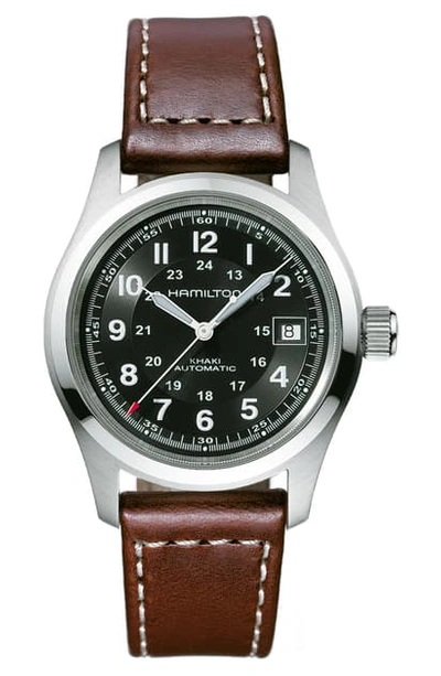 Khaki Field Automatic Leather Strap Watch, 38mm In Metallic