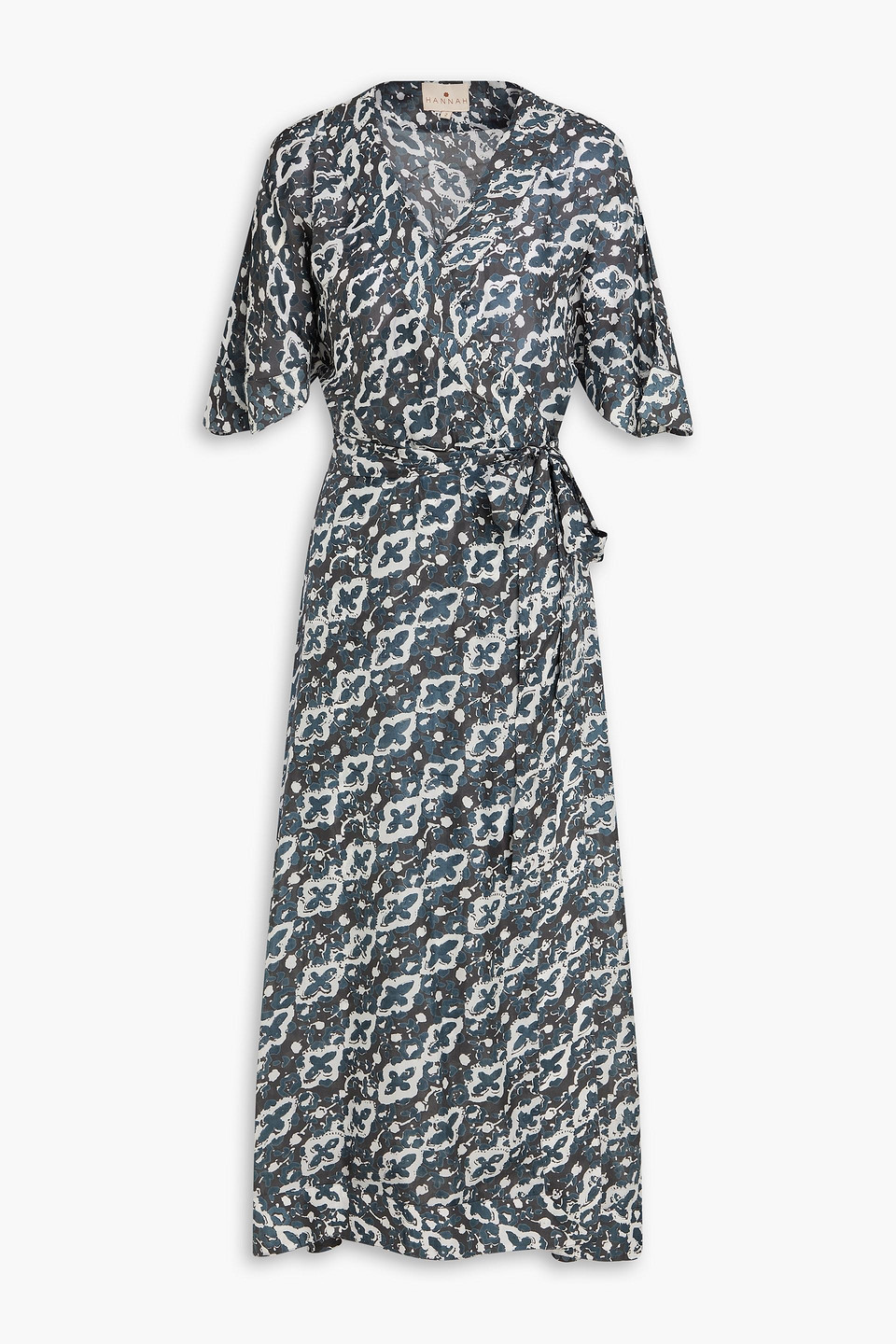 Clementine Printed Silk-voile Midi Wrap Dress In Grey