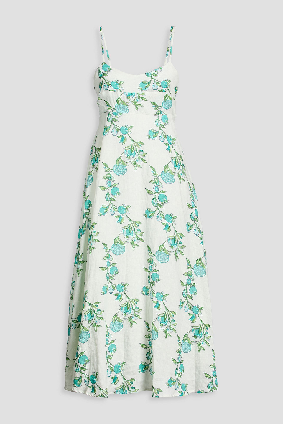 Elena Cutout Floral-print Linen Midi Dress In White