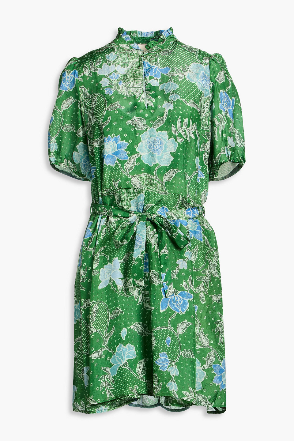 Gaia Belted Floral-print Silk-satin Mini Dress In Blue