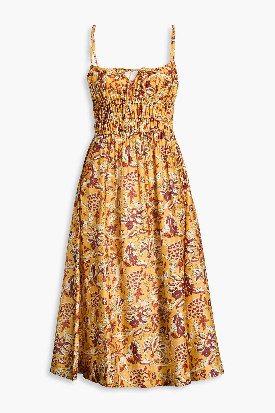 Yolanda Printed Cotton And Silk-blend Midi Dress In Yellow