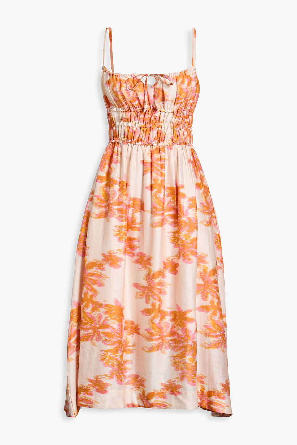 Yolanda Printed Cotton And Silk-blend Midi Dress In Sand