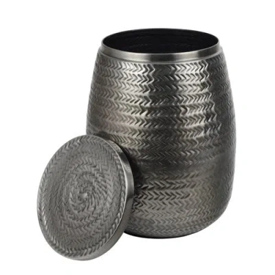 Merida Modern Rustic Hammered Metal Drum Storage Side Table With Lid In Black