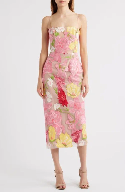Gemma Floral Appliqué Sequin Midi Dress In Multi