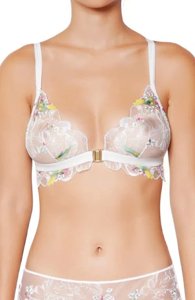 Dance Des Fleurs Embroidered Mesh Underwire Bra In Floral Green