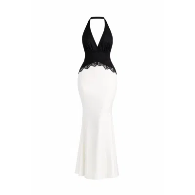 Women's Black / White Adel Lace And Satin Halter Maxi Dress In Multi