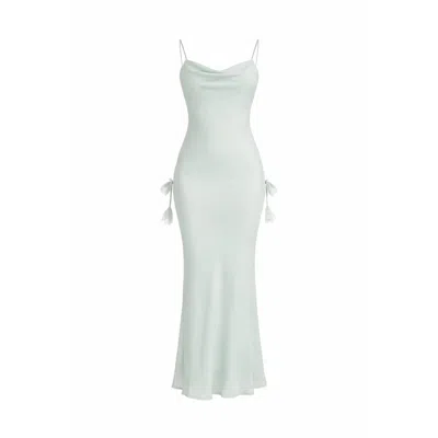 Women's Green Lyra Chiffon Open Back Dress With Petal Cascade