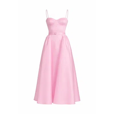 Women's Pink Amara Satin Bustier Pleated Midi Dress