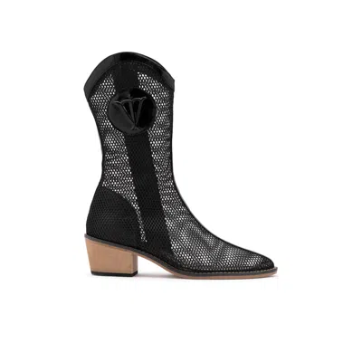 Reijo Black Patent Leather-mesh Women's Heeled Boot