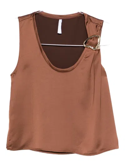 Buckle-detail Sleeveless Top In Brown