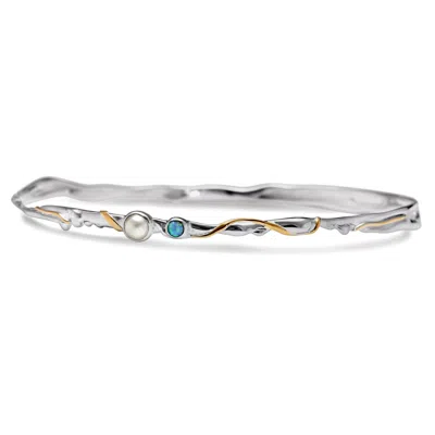 Women's Blue / Silver Delicate Opal & Freshwater Pearl Bangle