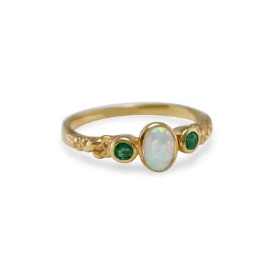 Women's Gold / Green / White Emerald & White Opal Gold Vermeil Ring In Multi