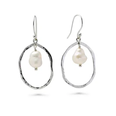 Women's White / Silver Large Pearl Hoop Earrings