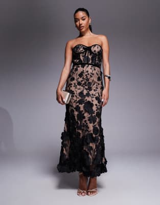 Cora Strapless Bandeau Sheer Skirt Maxi Dress In Black