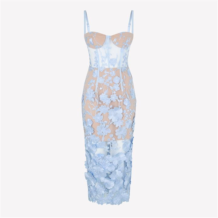 Satin Maxi Dress With Cutout Lace Detail In Blue