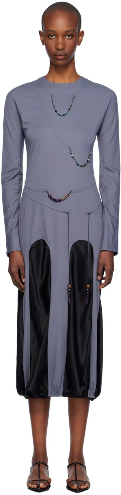 Grey Amulets Midi Dress In Dark Grey/black