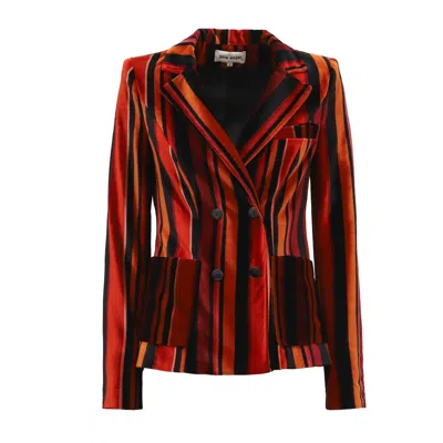 Women's Black / Red Retro Striped Jacket- Velvet Burgundy Red In Multi