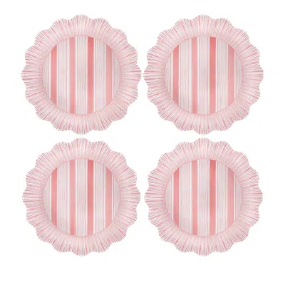 Cabana Stripe Melamine Dinner Plates, Set Of 4 In Coral