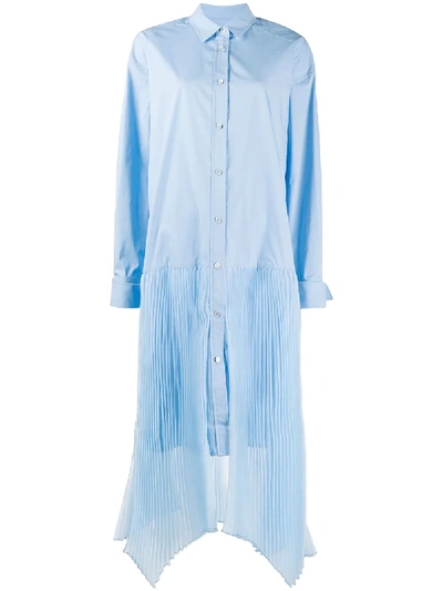 Pleated-trim Shirt Dress In Blue