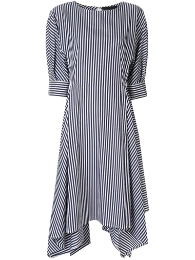 Striped Asymmetric Hem Shirt Dress In Blue