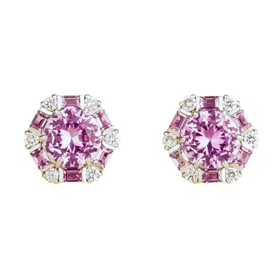 Women's Pink / White / Silver Melba White Gold Earrings Set With Pink Sapphire & Diamond In Multi