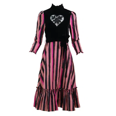 Women's Black / Pink Pink Stripe Velvet Sirsna Heart Dress In Multi