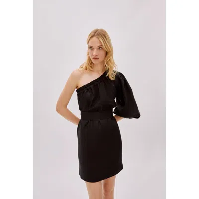Florence Black Linen One Sleeve Dress