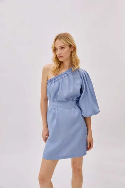 Florence Cloud Blue Linen One Sleeve Dress