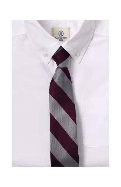 School Uniform Kids Stripe Pre Tied Tie In Burgundy/feather Grey Stripe