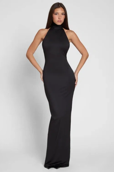 Heaven Halter Jersey Knot Maxi Dress In Black