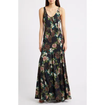 Helena Floral Maxi Cocktail Slipdress In Black