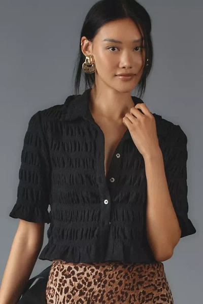 Smocked-waist Zip-up Shirt Dress In Multicolor