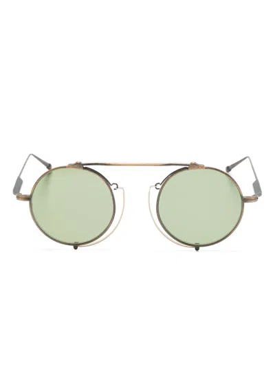 Antique Gold Titanium Sunglasses In Green