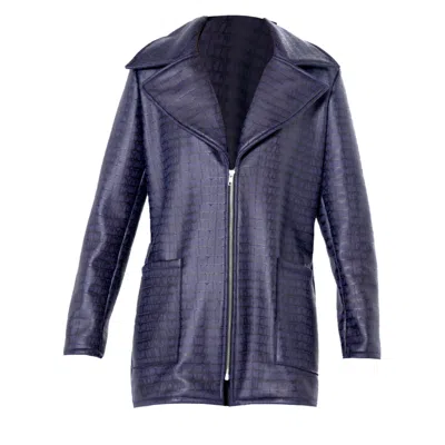 Women's Blue / Black Oversized Croc-effect Jacket In Blue