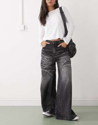 London Lightning Wash Baggy Jeans In Black