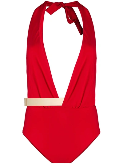 Deep V-neck Tie Back Swimsuit In Red