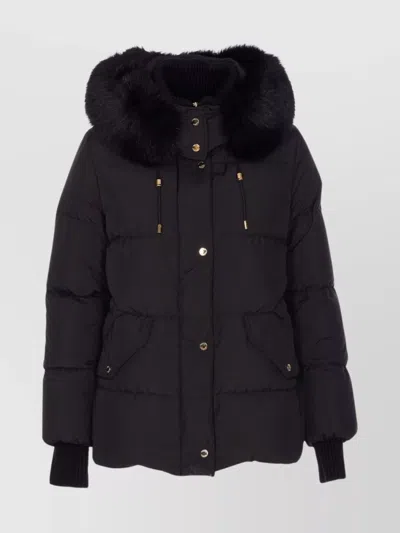 Quilted Jacket With Removable Fur Hood In Black