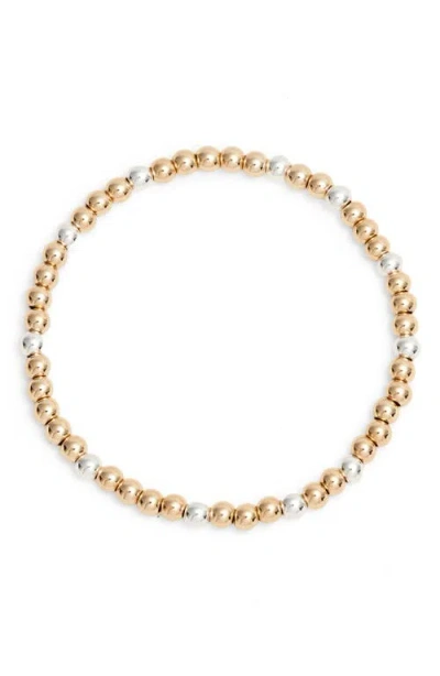 Mixed Metal Bead Stretch Bracelet In Gold Fill