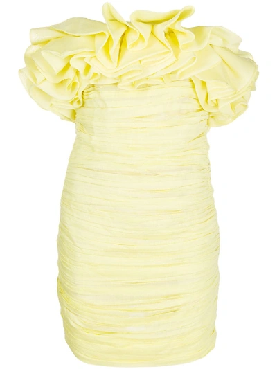Emanuelle Pleated Ruffle Mini Dress In Yellow