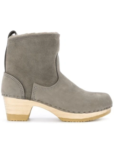 5” Shearling Clog Boots In Grey