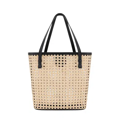 Women's Neutrals / White Audrey Mesh Rattan & Leather Tote - Bone