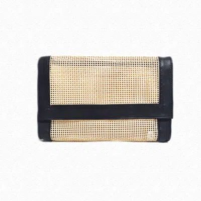 Women's Blake Mesh Rattan & Leather Clutch - Black