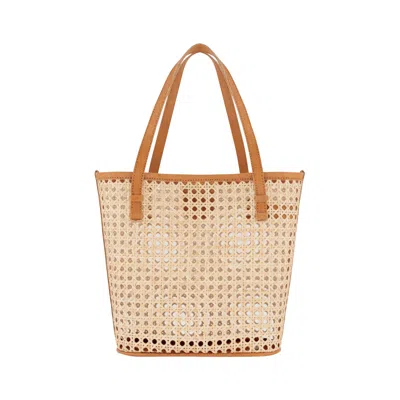 Women's Brown Sophie Rattan & Leather Tote - Caramel