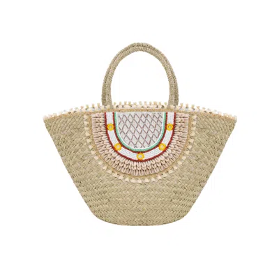 Women's Neutrals Anouk Embroidered Straw Beach Bag - Sand