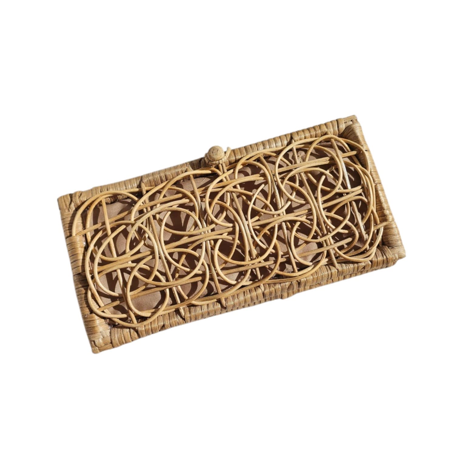 Women's Blake Mesh Rattan & Leather Clutch - Brown