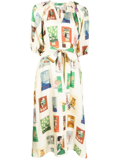 Matchbox-print Belted Midi Dress In Yellow
