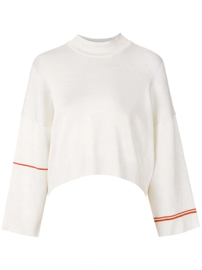 Cropped Striped Sleeve Jumper In White