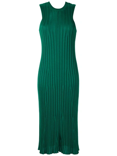 Ribbed Knit Midi Dress In Green
