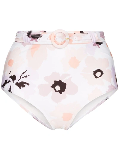 Floral Print High-waist Bikini Bottoms In White