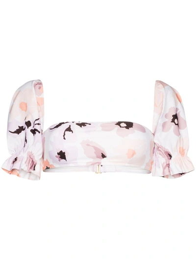 Women's Soiree Puff-sleeve Floral Bikini Top